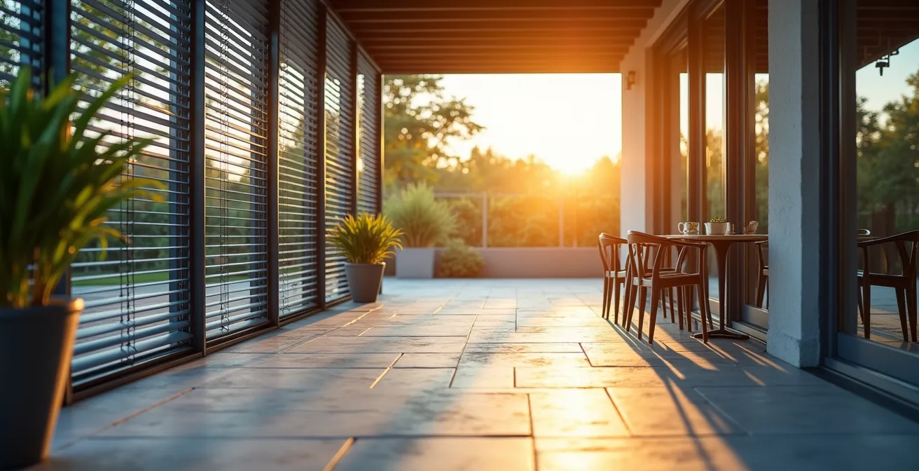 L’installation d’une protection solaire extérieure, comme un brise-soleil orientable (BSO) ou des volets roulants, est la stratégie la plus efficace pour créer un « bouclier solaire ». Contrairement à un store intérieur, cette barrière bloque les rayons du soleil avant qu’ils n’atteignent le vitrage, empêchant ainsi la chaleur de pénétrer. L’efficacité est remarquable : l’utilisation correcte de ces dispositifs peut faire baisser la température intérieure de 4 à 7°C de réduction. Mais leur performance dépend crucialement de deux facteurs : la couleur des lames et leur orientation.